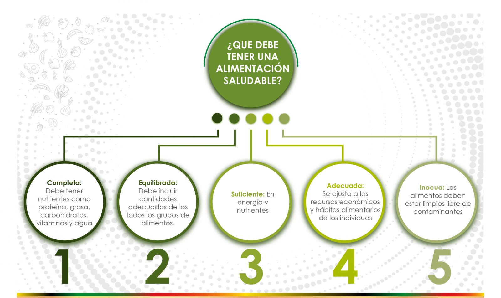 La salud y el buen funcionamiento de nuestro organismo, depende de una alimentación saludable, que contenga alimentos variados y nutritivos en cada comida todos los días, de manera que el cuerpo pueda realizar las diferentes funciones y mantener la salud. La alimentación saludable es muy fácil: Come en familia, come más frutas y verduras, cereales integrales y lácteos, evita los alimentos fritos y los refrescos, disminuye el uso sal y toma más agua.