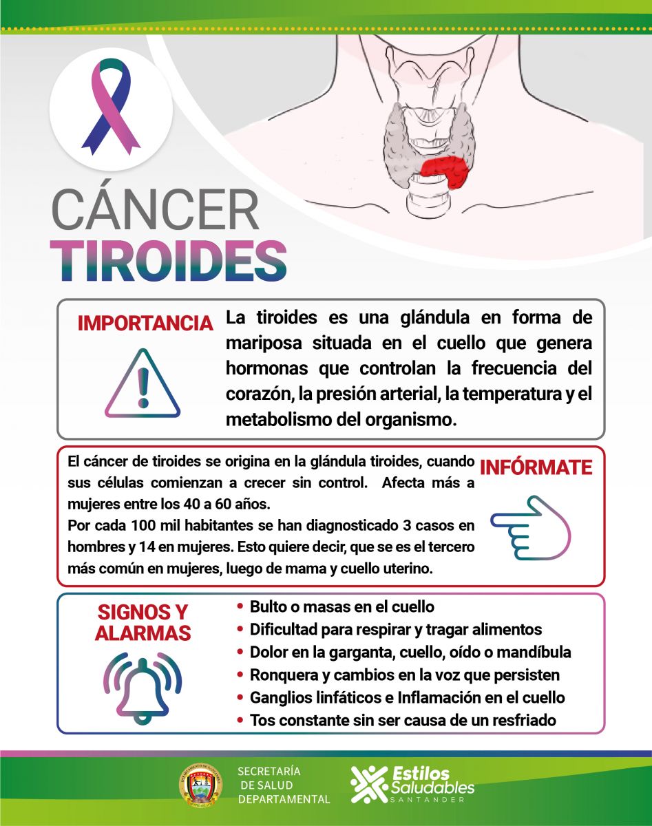 CÁNCER DE TIROIDES El cáncer de tiroides es una enfermedad por la que se forman células malignas (cancerosas) en los tejidos de la glándula tiroidea. La tiroides es una glándula ubicada en la base de la garganta, cerca de la tráquea que tiene forma de mariposa. Descubra como prevenir o actuar frente a síntomas del cáncer de tiroides. Fuente: Organización Panamericana de la Salud-OPS, 2021 |