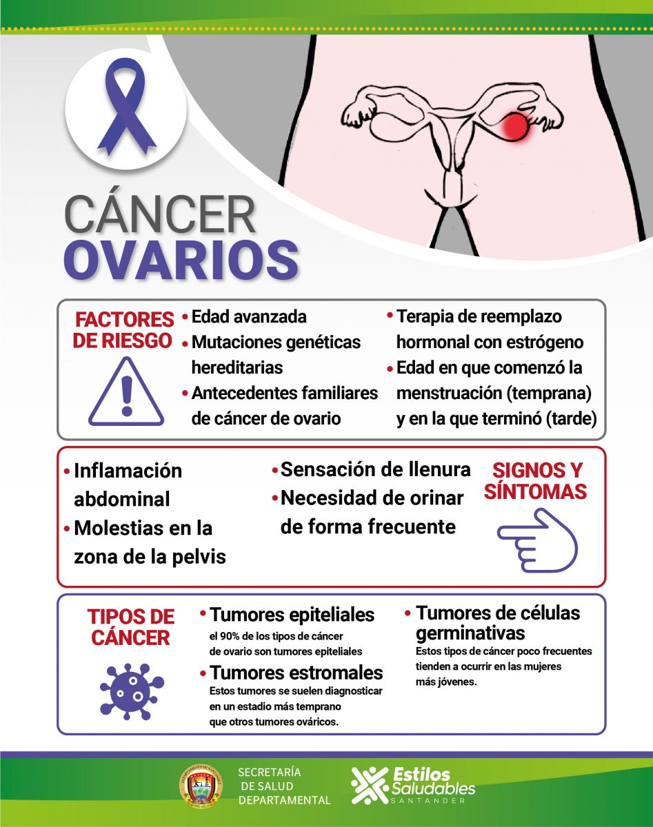 El cáncer de ovario es una enfermedad en la cual se encuentran células cancerosas en el tejido de uno o ambos ovarios. Es una enfermedad altamente letal y de comienzo engañoso. La edad promedio de aparición es de 59 años. Se calcula que una de cada setenta mujeres desarrollará un cáncer de ovario en algún momento de su vida.