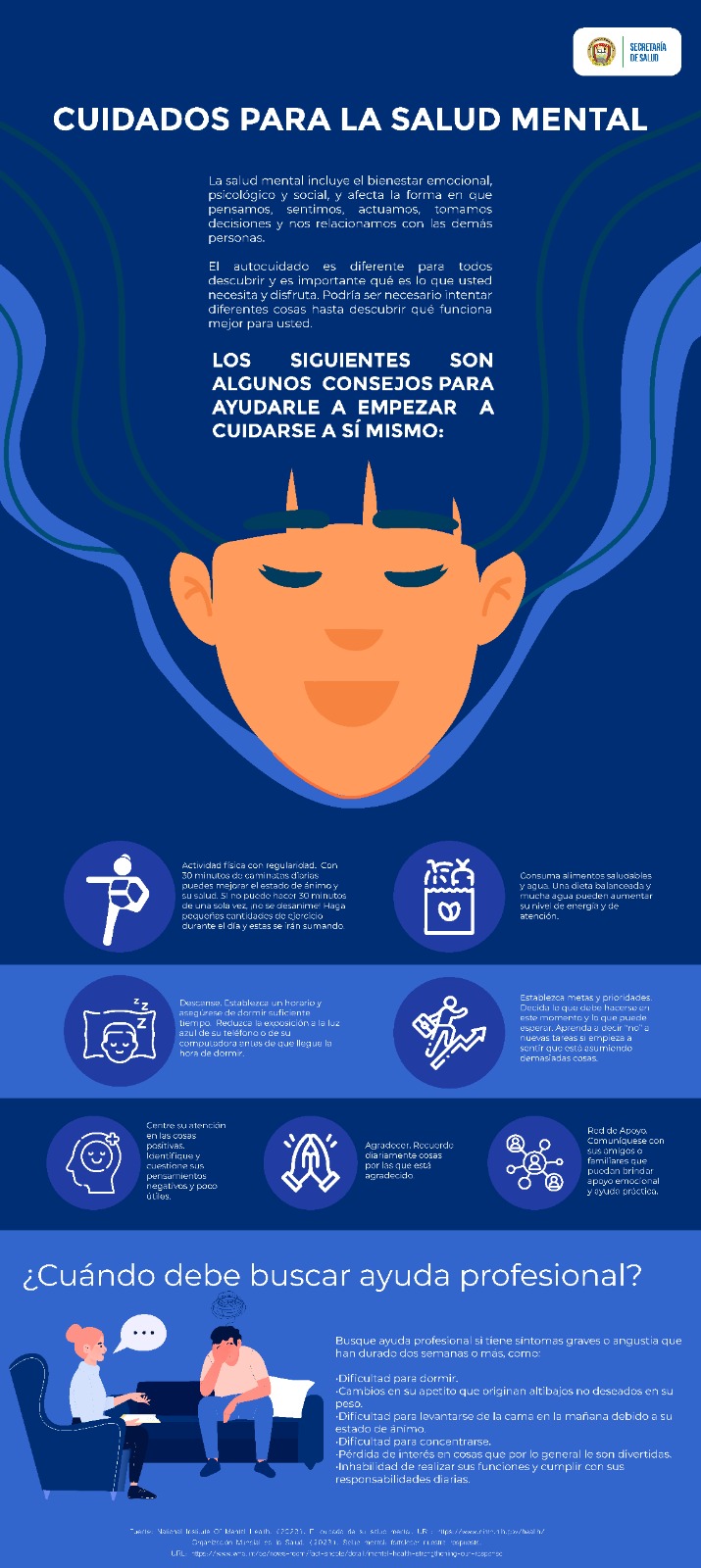 A continuación, la infografía nos presenta información importante para cuidar la salud mental: