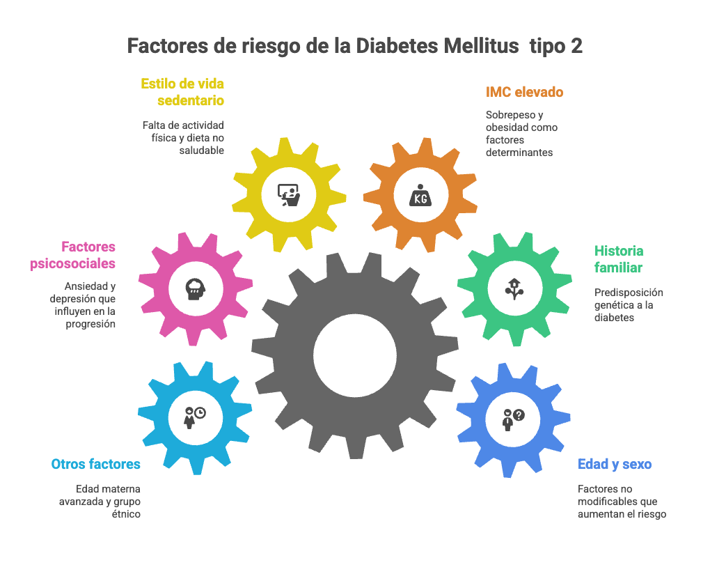 Factores psicosociales como ansiedad y depresión pueden influir en la progresión hacia diabetes.