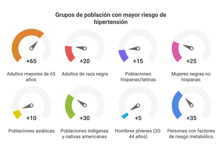 Bajo nivel socioeconómico: Se asocia con mayor prevalencia de hipertensión, probablemente por la interacción de múltiples factores ambientales y conductuales.
