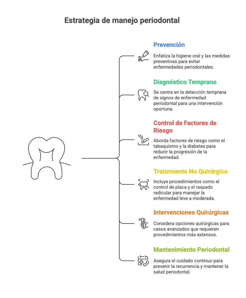 Los lineamientos piden identificar y organizar la red de prestadores de servicios de salud bucal en el territorio, asegurando acceso a diagnóstico, tratamiento periodontal básico y rehabilitación, según niveles de riesgo y severidad. Se deben definir mecanismos claros de referencia y contrarreferencia para personas con periodontitis, desde la atención primaria hacia niveles de mayor complejidad cuando se requiera manejo especializado.