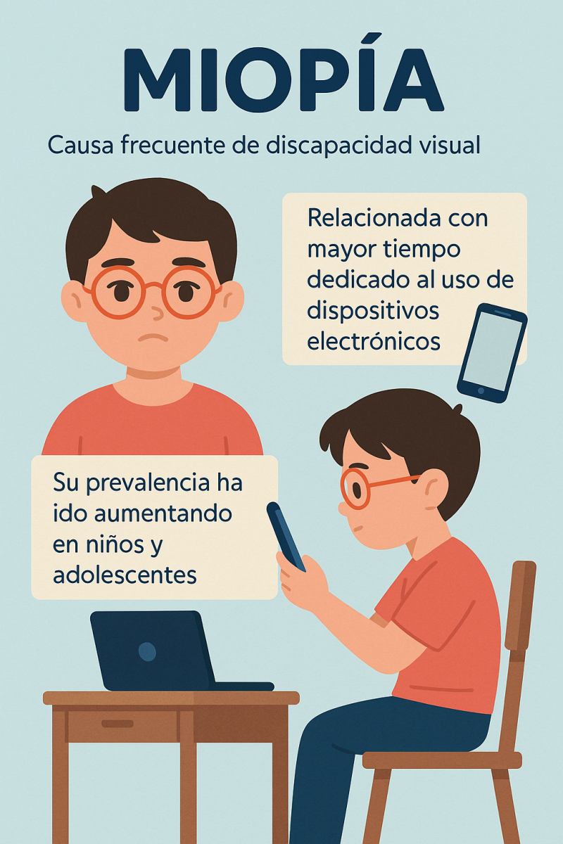 - La miopía es una causa frecuente de discapacidad visual en el mundo y su prevalencia ha ido aumentando considerablemente en las últimas décadas, especialmente en niños y adolescentes, alcanzando tasas de hasta el 50% en algunos grupos poblacionales.